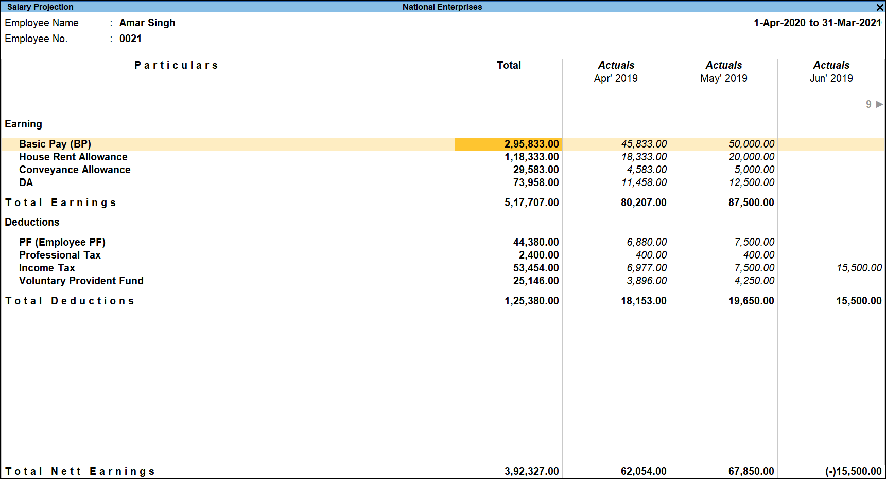 View Salary Projection Report in TallyPrime (Payroll)