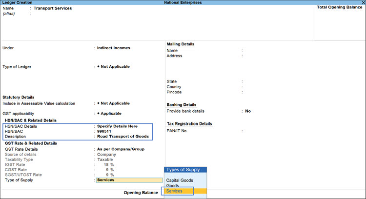 If your business deals with services, you will need to set up the service ledger with the required GST details. You can also specify the GST details of the service in your Company, especially if your Company’s services fall under a common SAC or GST rate.