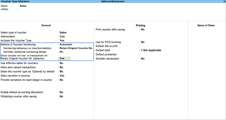 - Press F12 (Configure) > set Define multiple numbering series for vouchers to Yes.
