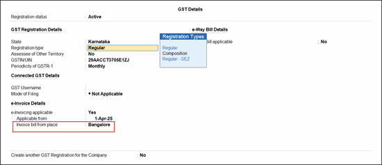 1. Press F11 (Company Feature) > Enable Goods and Service Tax (GST): Yes.
