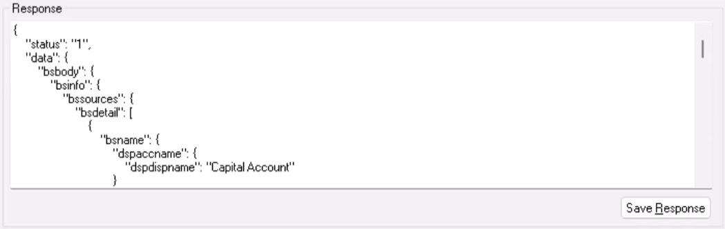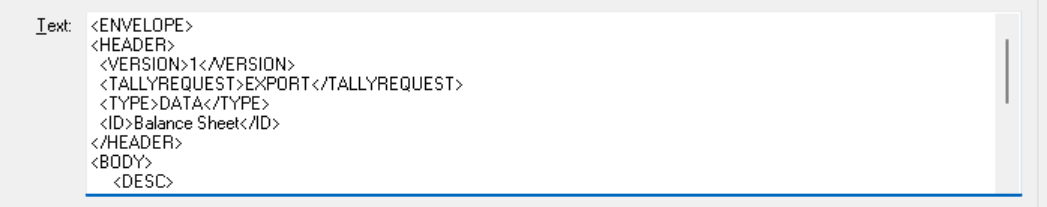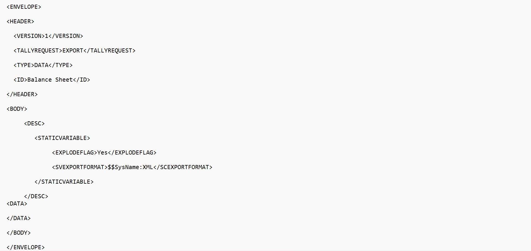 For example, the request to export the Balance Sheet can be specified as shown below: