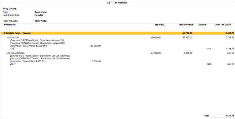 For TallyPrime 2.1 or earlier, press Ctrl+I to view the Tax Analysis.