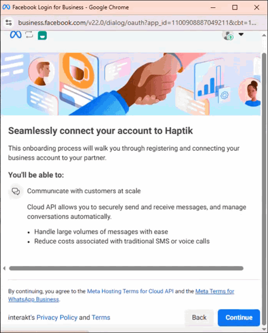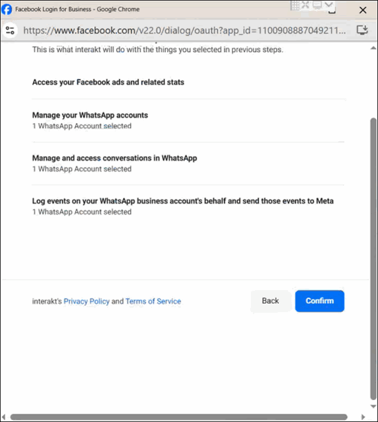 - Click Confirm to allow Interakt to allow access permissions required for completion of onboarding.