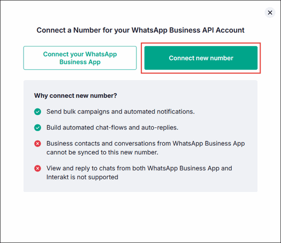 If you wish to connect your existing WhatsApp Business App number for the WhatsApp API account, click here.