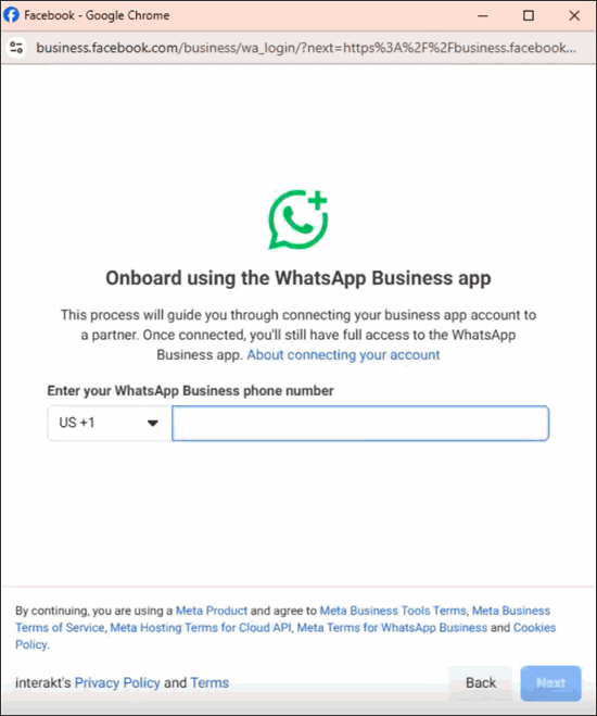 Step 4: Log in to Integrate your Existing WhatsApp Business Number with Meta