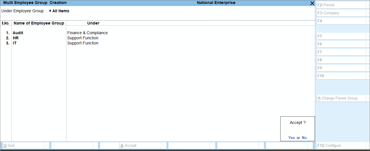 - Press Alt+G (Go To) > Create Master > Employee Group and press Enter.