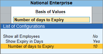 - Press Ctrl+B (Basis of Values) > disable Show all Employees > enable Show Expiry in Days.