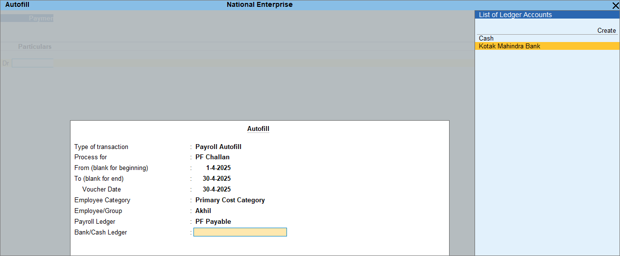In the Payment voucher: