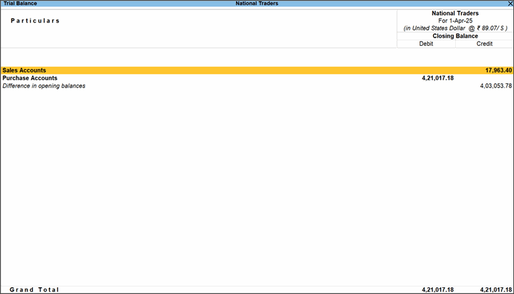 TallyPrime allows you to view reports in your base currency, any other currency you have created, or multiple currencies simultaneously.